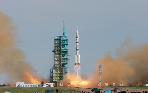 北京時(shí)間6月11日17時(shí)38分許,中國(guó)長(zhǎng)征二號(hào)F運(yùn)載火箭在酒泉衛(wèi)星發(fā)射中心載人航天發(fā)射場(chǎng)點(diǎn)火起飛,將神舟十號(hào)載人飛船發(fā)射升空。中國(guó)航天員聶海勝、張曉光、王亞平搭乘神舟十號(hào)飛船出征太空。
