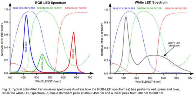 嚴(yán)格地講,世界上是不存在某個(gè)與白光對(duì)應(yīng)的波長的,白光只是多種顏色光的混合光。為此,LCD只能通過背光+熒光粉的方式來產(chǎn)生白色背光,最常使用的是藍(lán)色背光+黃色熒光粉的組合。