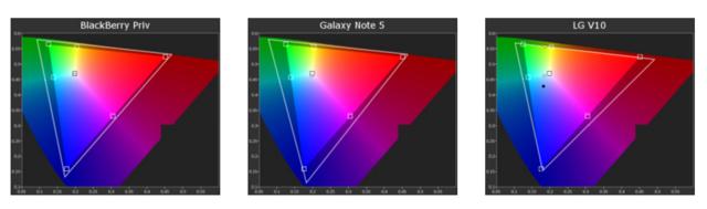 而如果對(duì)一些AMOLED屏幕手機(jī)和一些LCD屏幕手機(jī)進(jìn)行一下詳細(xì)檢測的話,也能看出一些差別。比如屏幕雖然都來自三星,但黑莓Priv和Galaxy Note 5的色域范圍仍然稍有差別,而與使用LCD屏幕的LG V10的區(qū)別就更加明顯。不難看出,除了屏幕本身的材質(zhì)之外,各家廠商的調(diào)校對(duì)屏幕色彩也有影響。